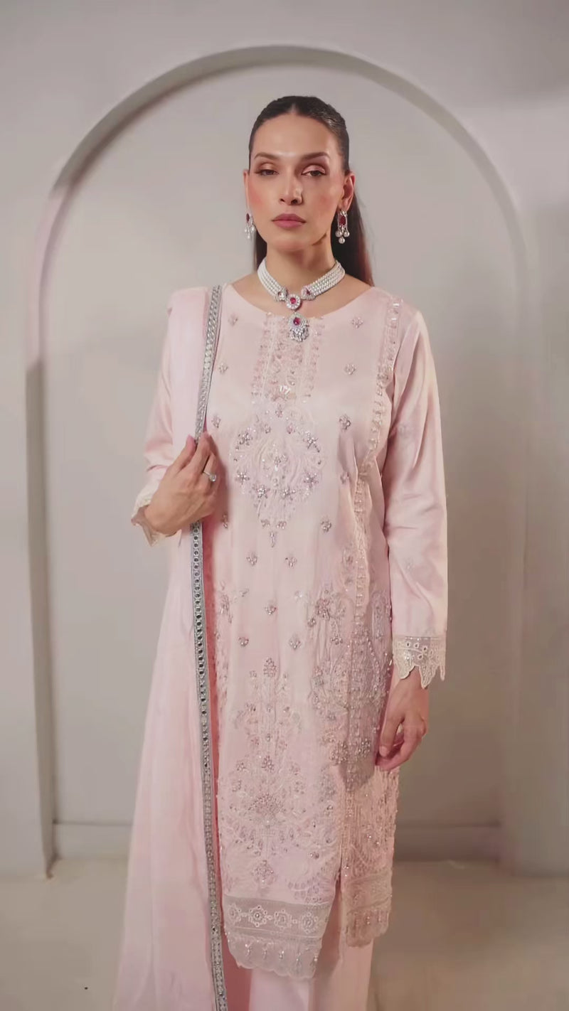 Feminine, graceful, and timeless — this pastel pink set is a must-have for those who love understated elegance.