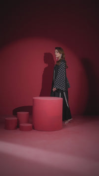 Talk To ConsultantThis black raw-silk outfit features a modern angrakha-inspired cutline that blends clean structure with traditional charm. The angrakha panel and sleeves are fully embellished with intricate adda embroidery, adding rich texture and a couture finish. With fused detailing for a crisp shape and sleek straight trousers, the ensemble delivers bold, contemporary sophistication-ideal for fashion-forward occasions. 2Pc